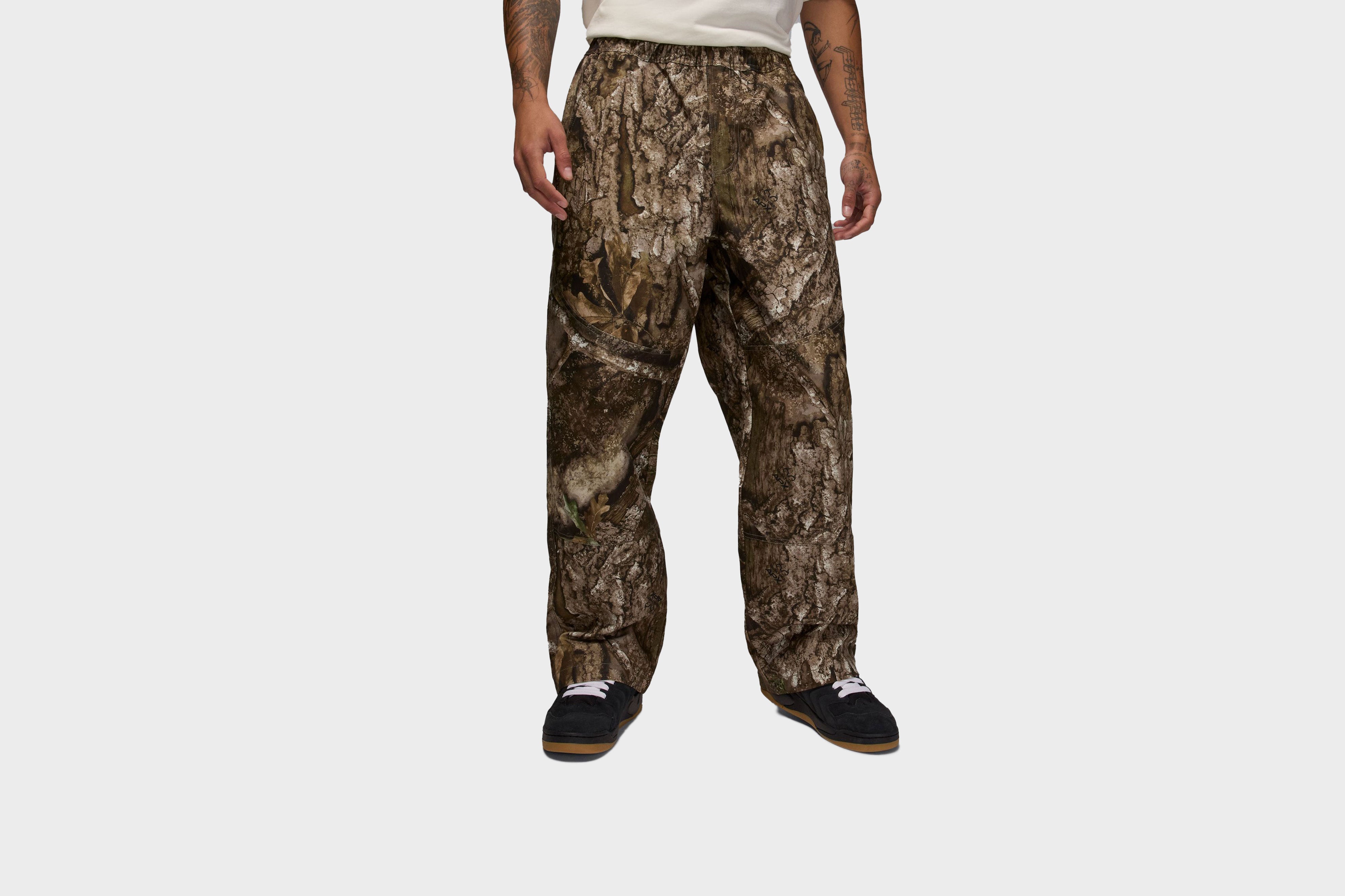 Jordan meets Realtree in these loose fitting canvas pants. Workwear inspired, these pants come with stitching that gives you that double-knee look.