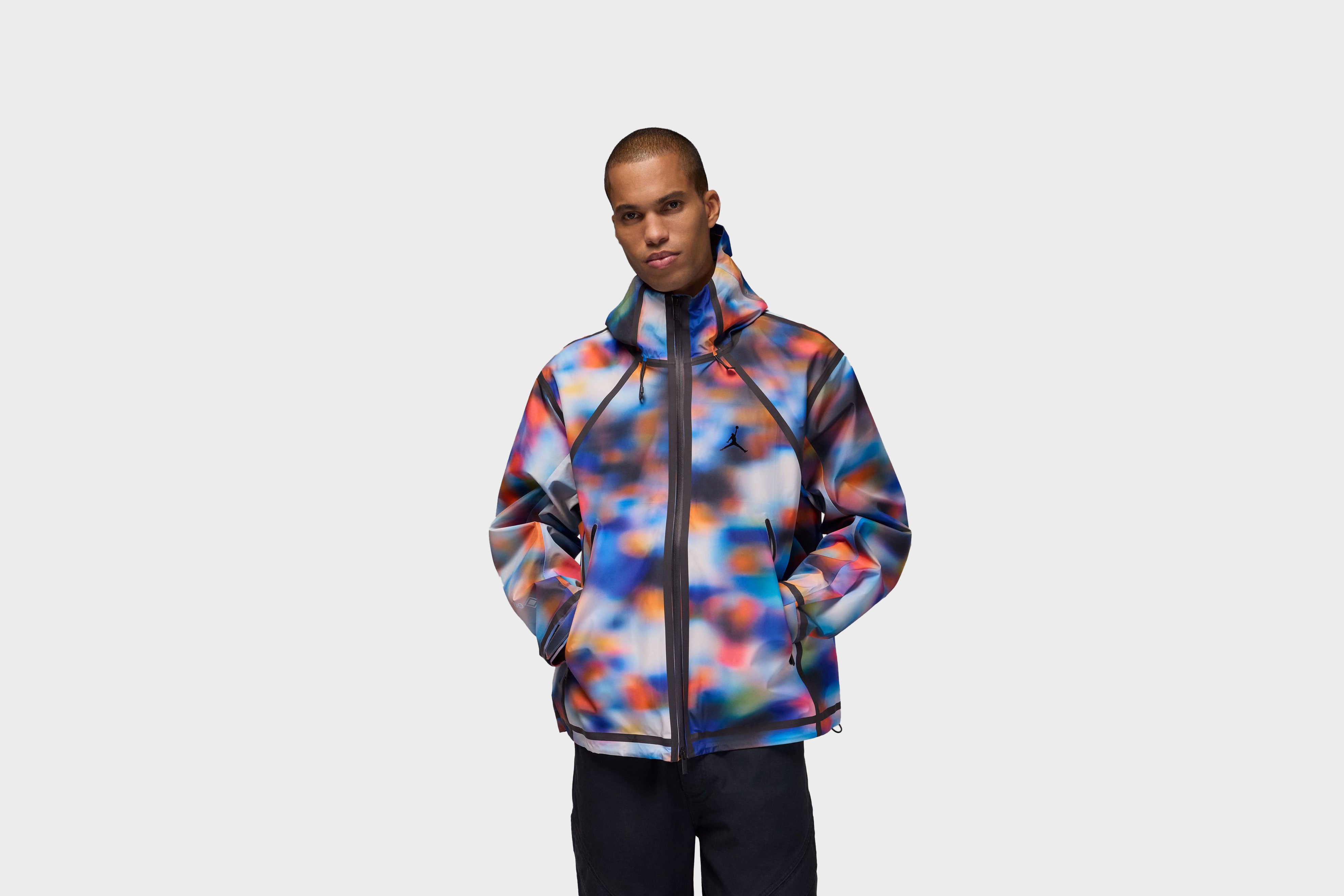 Keepin' out the elements and keepin' the look intact, you can do both. This jacket's made with sturdy woven fabric and GORE-TEX material to keep the wind and rain at bay. And the allover print takes inspiration from MJ’s free throw line jump in the '87 slam dunk contest, bringing the cheering crowd to you.