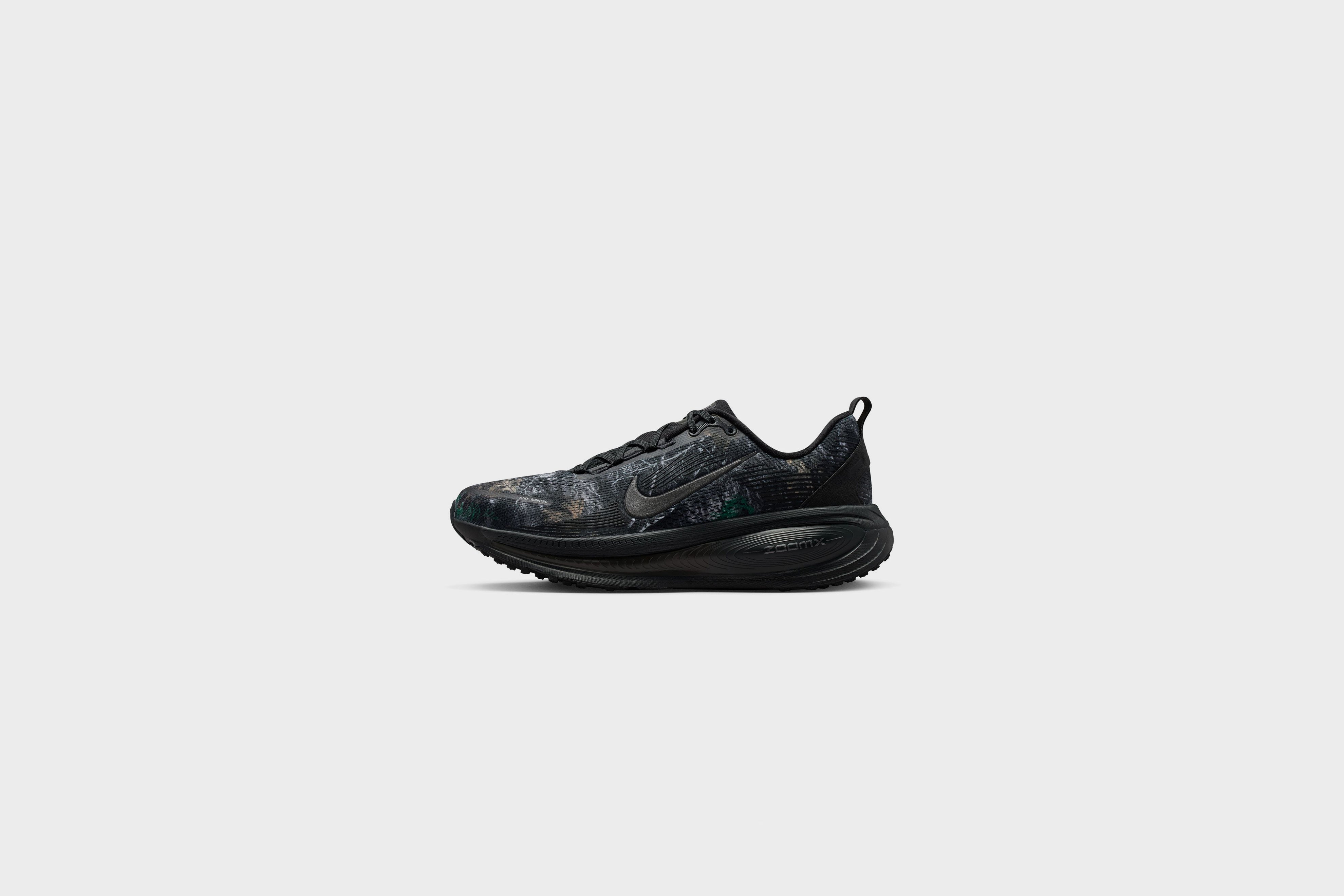 Maximum cushioning in the Vomero 18 provides a comfortable ride for everyday runs. Our soft, cushioned ride has lightweight ZoomX foam stacked on top of responsive ReactX foam in the midsole. Plus, the mesh upper is elevated with a Realtree® camo graphic and a redesigned traction pattern on the outsole offers a smooth heel-to-toe transition.